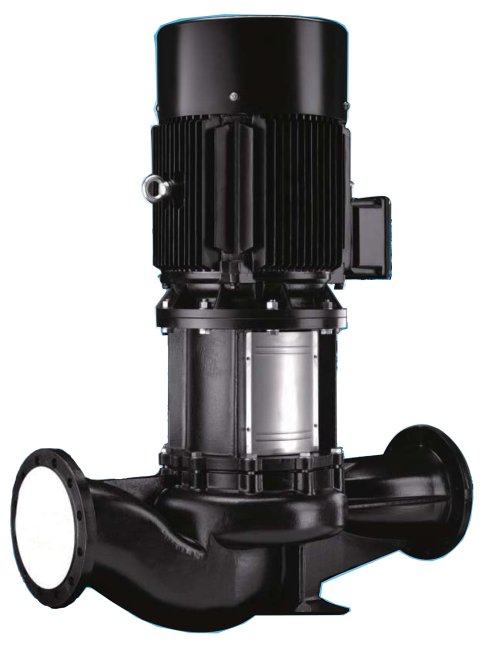 單級立式管道循環泵,泵進出水口在泵底同一直線上,產品設計為頂部可拉出的拆裝形式(部分水泵為變拆式),其可以在不影響管路系統的情況下對泵進行維修。